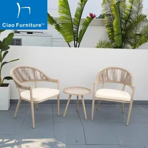 Hot Sale 3 Pieces Garden Outdoor Balcony Aluminum Coffee Table Set Rope Dining Chairs Furniture