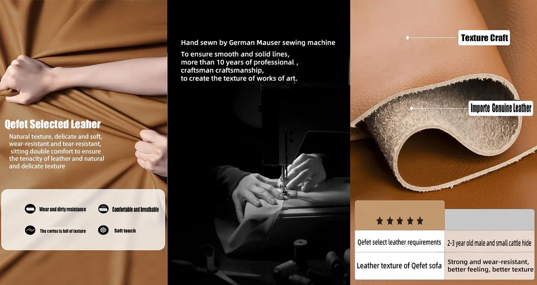 Our sofa selection uses 2-3 years old imported calf leather, Russian larch wood, and 45g/m3 high-density memory rebound sponge filled with down packing for superior comfort.